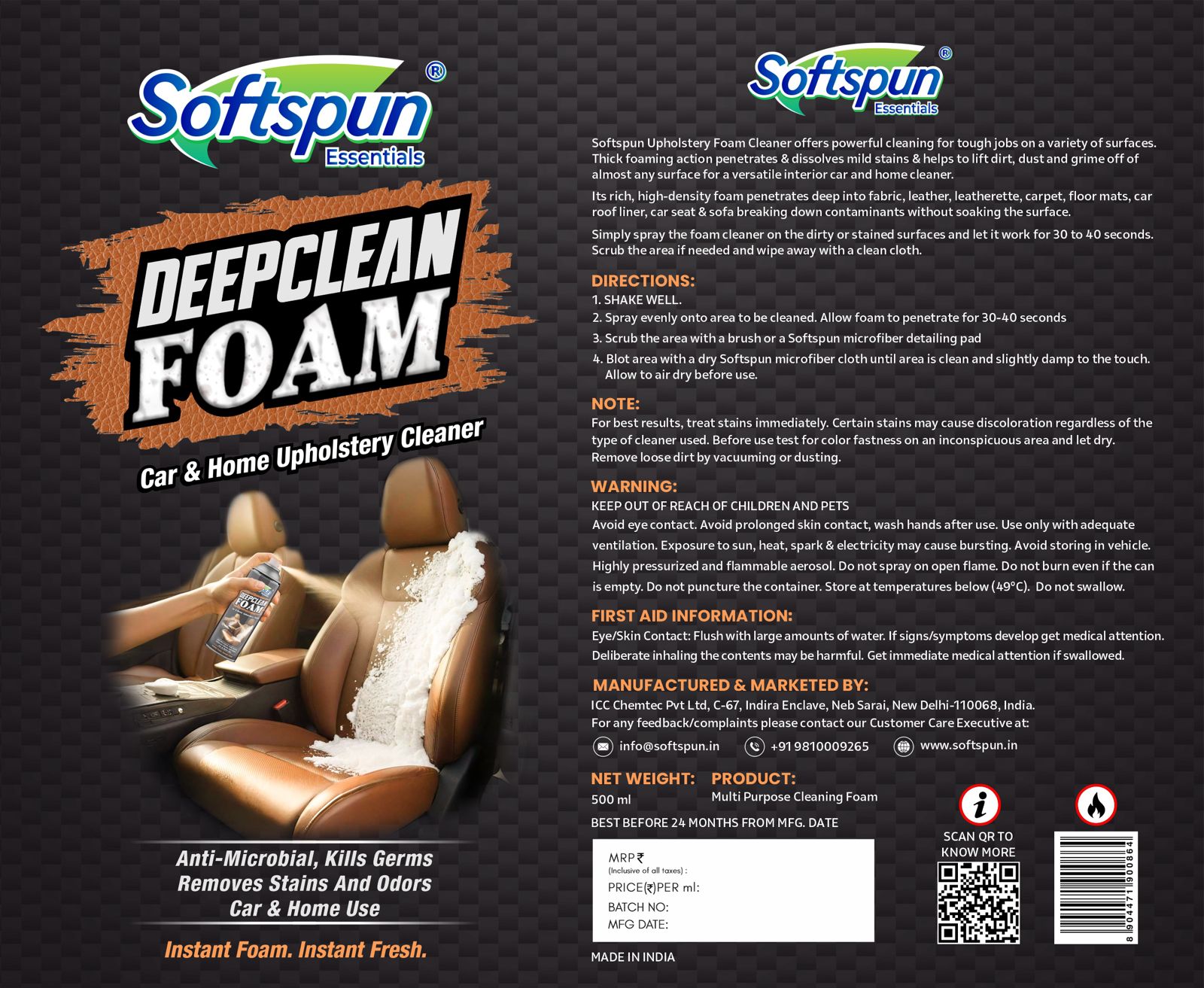 Give your interiors a deep, refreshing clean with Softspun Essentials DeepClean Foam Upholstery Cleaner. Designed to tackle tough stains, dirt, germs, and odors, this powerful foam cleaner works effectively on both car and home upholstery, delivering professional-level results with ease.