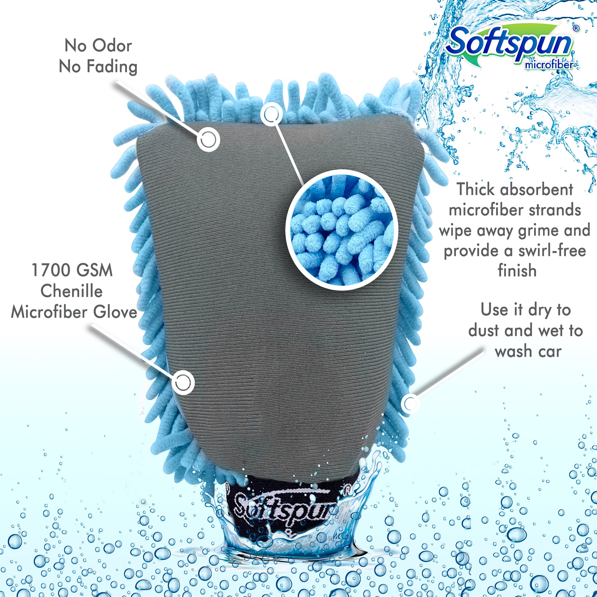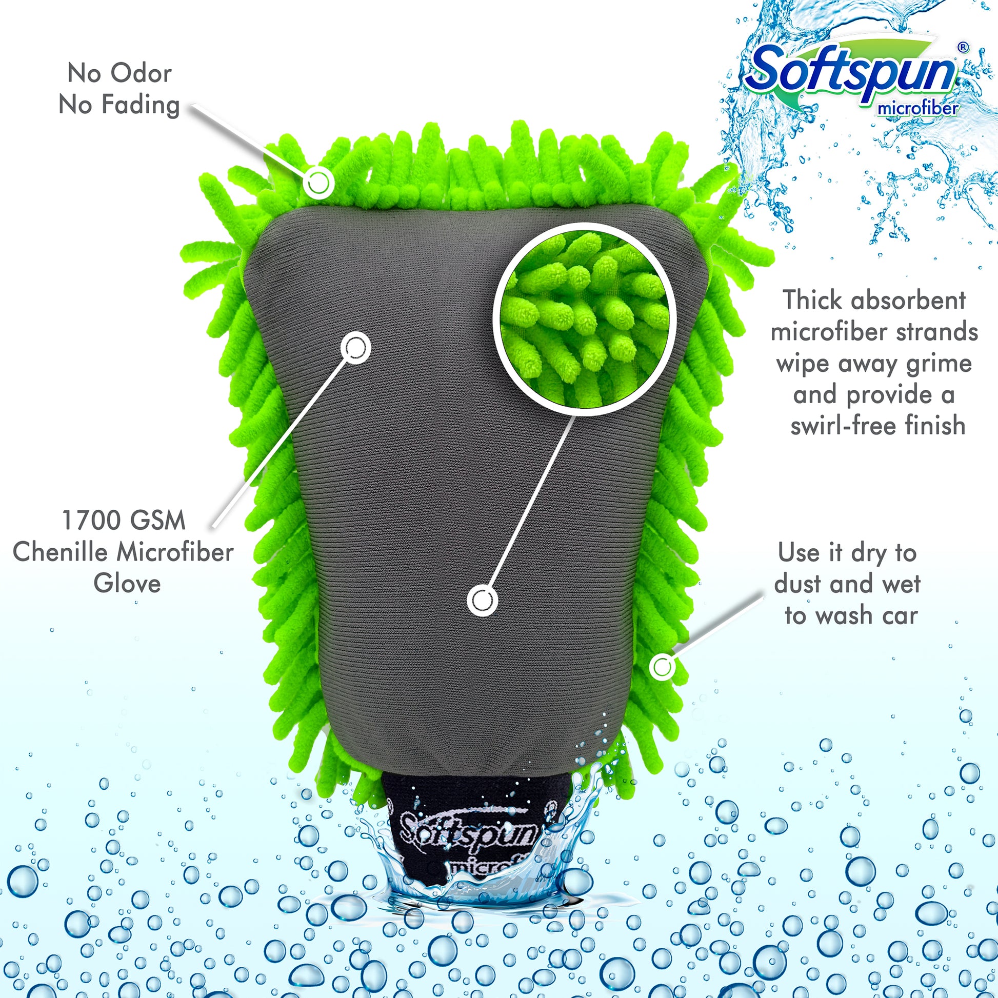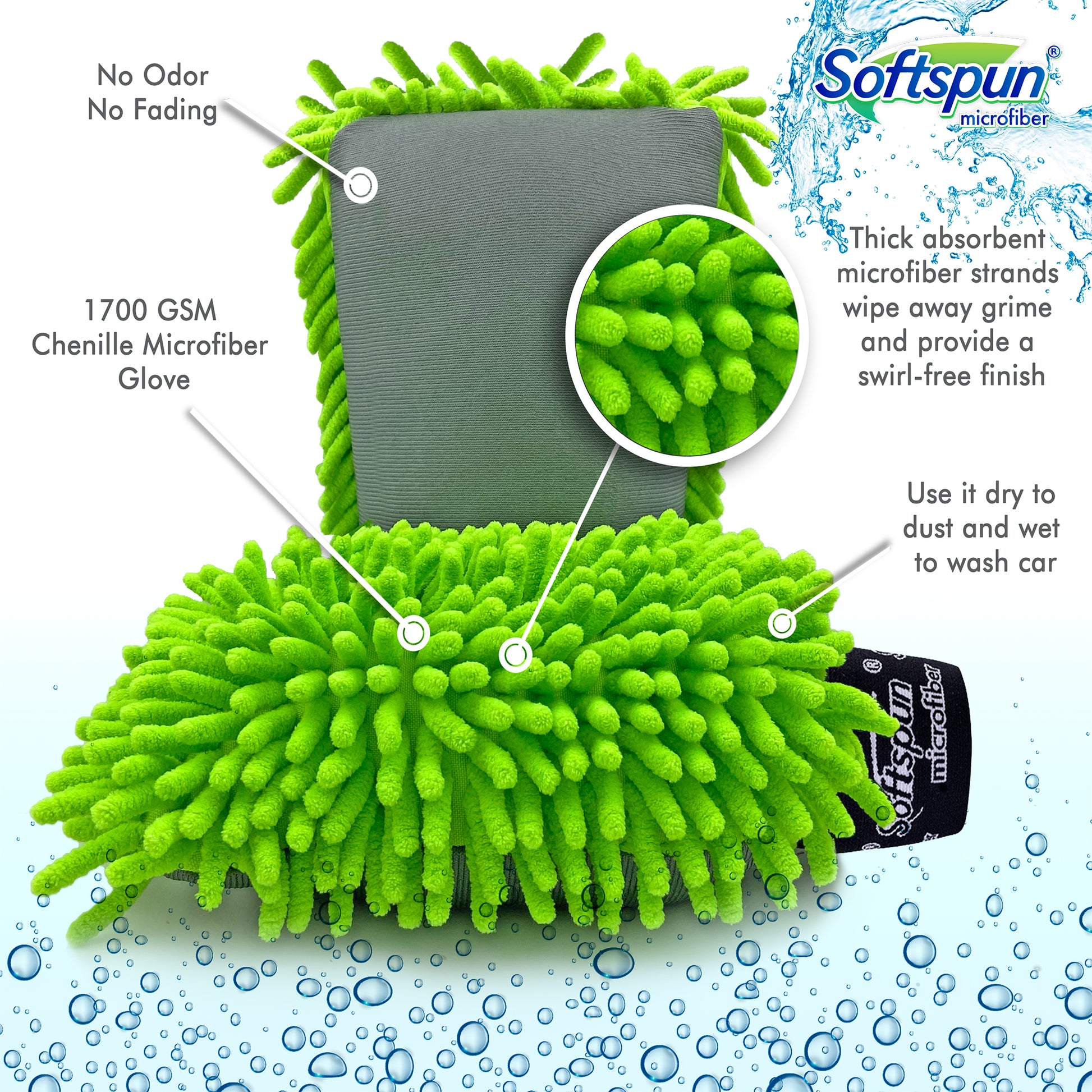 - LINT-FREE AND NON-SCRATCH - Premium Chenille Microfibre, lint-free, provide a swirl-free finish. More effective cleaning power than any car wash sponge and cloths-duster, Use indoors and out, wet or dry.