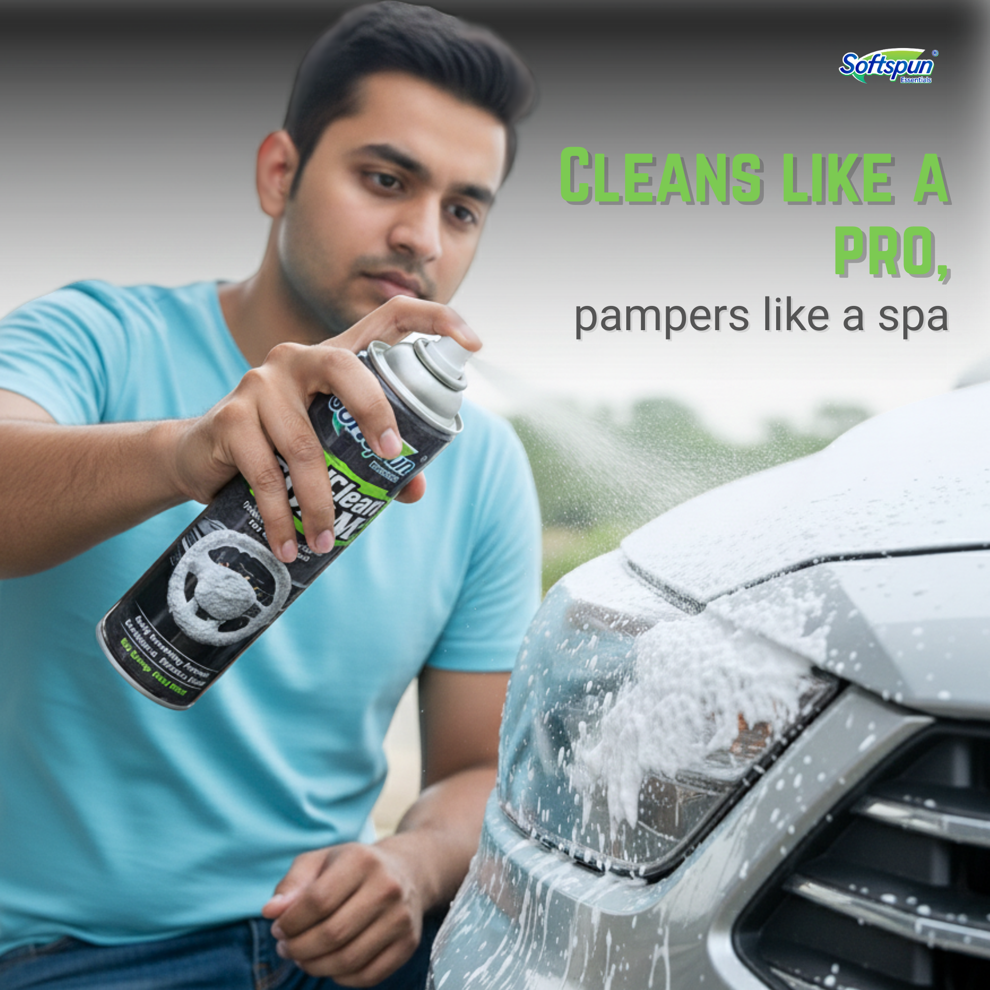 Meet your all-in-one cleaning solution for both car and home — Softspun Essentials TotalClean Multipurpose Foam. Engineered for powerful yet surface-safe cleaning, this active foam penetrates dirt, lifts grime, and restores freshness with every spray.
